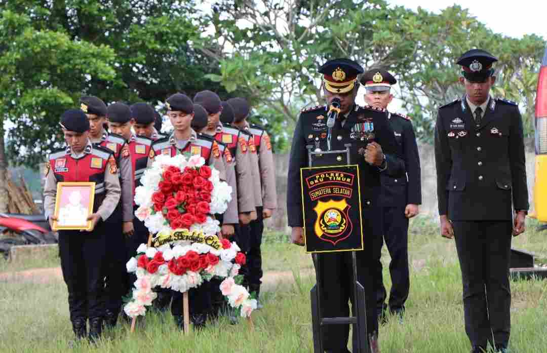 Upacara Prosesi pemakaman tersebut berlangsung Khidmad. Bahkan kegiatan tersebut diikuti seluruh PJU Polres OKU Timur beserta Kapolsek jajaran.