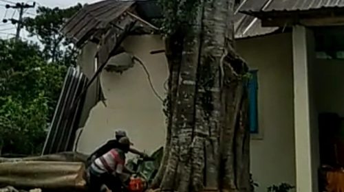 Pemalang Jateng, (MR) – Mengutamakan keselamatan warganya R.M Syaihudin, S.A.P akhirnya tebang pohon beringin besar didepan kantor Balai Desa Mandiraja Kecamatan Moga, beberapa waktu yang lalu. Dimana sebenarnya rencana penebangan ditunda sudah sejak lama. Pohon beringin yang diperkirakan berusia hampir ratusan tahun tersebut, kini sudah ditebang oleh pihak pemerintah desa Mandiraja. Dan itupun langsung atas perintah kepala desa, setelah sebelumnya diadakan musyawarah dengan perangkatnya. “Lah terus karena banyak warga yang mengeluh, pak tolong itu pohonnya ditebang. Akhirnya saya musyawarah dengan BPD dan perangkat”. Ujar Ilmi, sapaan akrab Kepala Desa Mandiraja tersebut.