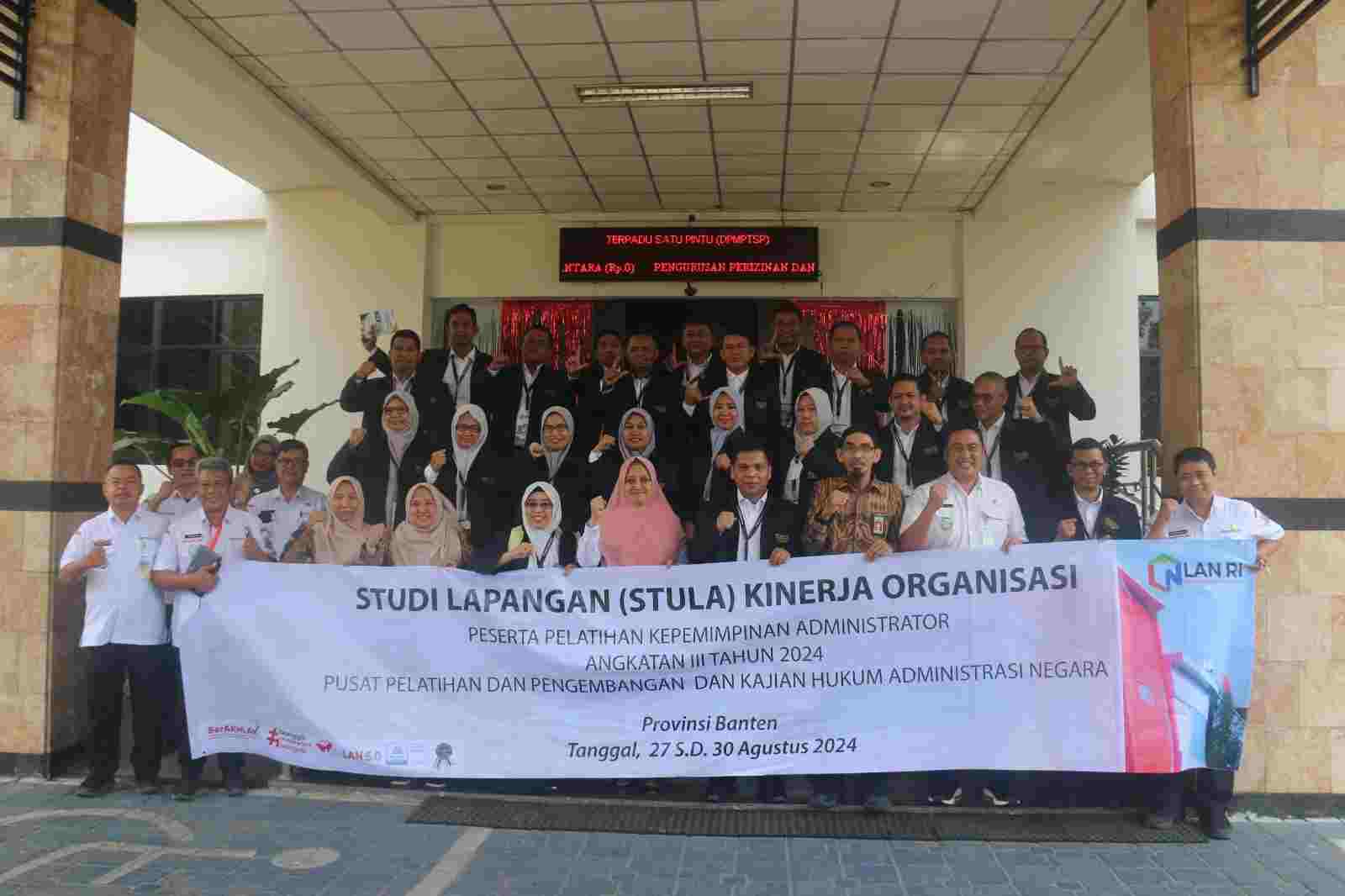SERANG, (MR) – Sebanyak 45 peserta Pelatihan Kepemimpinan Administrator (PKA) Angkatan III Tahun 2024 melakukan studi lapangan (stula) di kedua instansi terkemuka yang ada di Provinsi Banten yakni, Kantor Badan Perencanaan Pembangunan Daerah (BAPPEDA) dan Kantor Dinas Penanaman Modal Pelayanan Terpadu Satu Pintu (DPMPTSP) yang diselenggarakan oleh Puslatbang KHAN LAN dan masing-masing peserta PKA dibagi dua kelompok yakni kelompok A dan B.
