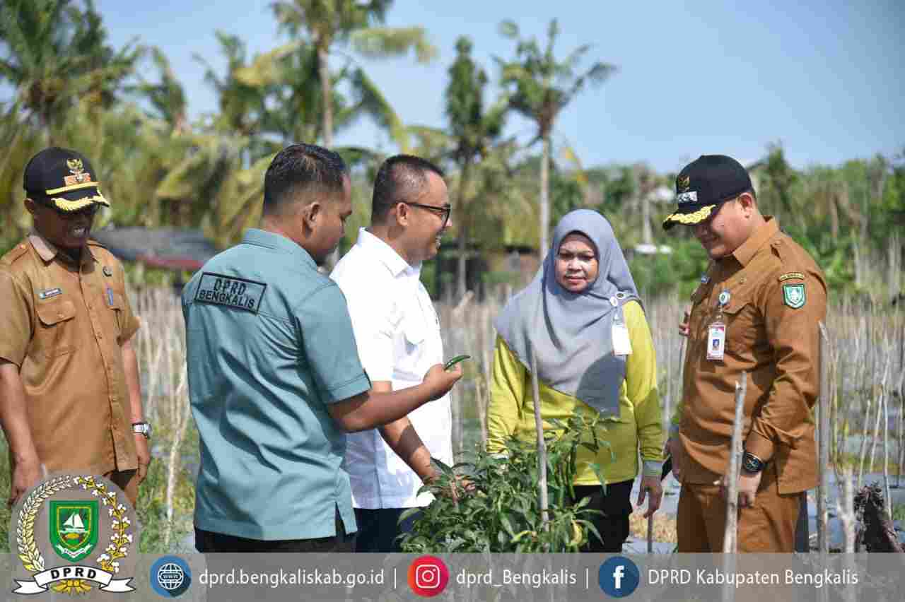 Hendra didampingi oleh Kepala Bidang Dinas Ketahanan Pangan, Susy Hartati, Camat Bantan, Rafli Kurniawan, Pj Pambang Baru, Kapolsek Bantan, Babinsa Pambang Baru, serta anggota Kelompok Tani Millenial Desa Pambang Baru.