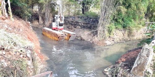 Adapun pelaksanaan pengerukan ini dikerjakan menggunakan alat berat amphibious excavator mini di Kali Cantiga di beberapa ruas seperti Komplek Perdagangan sepanjang 300 m, saluran pembuang Karang Timur ruas Perumahan Metro Permata sepanjang 850 m dan Perum Peruri sepanjang 1242 m, dan Kali Cantiga ruas Puri Beta sampai dengan jembatan joglo lebih kurang 1300 m.