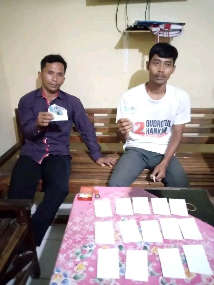TULANG BAWANG, MR – Dua orang warga Kampung Trirejo Mulyo, Kecamatan Penawartama, Kabupaten Tulangbawang, Lampung, Nurdin dan Supriyadi, dari tim Paslon 02 tertangkap tangan tengah membagikan amplop ke masyarakat setempat. Pelaku ditangkap dan diamankan oleh tim Satgas 60, pada Minggu (24/11/24) malam.