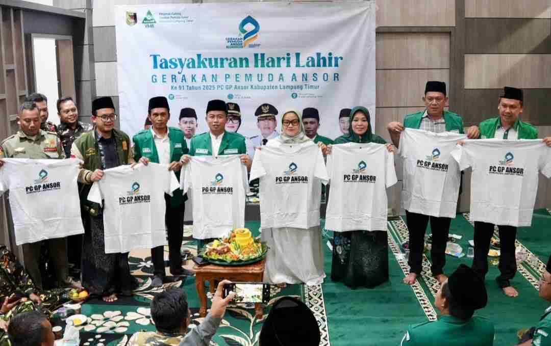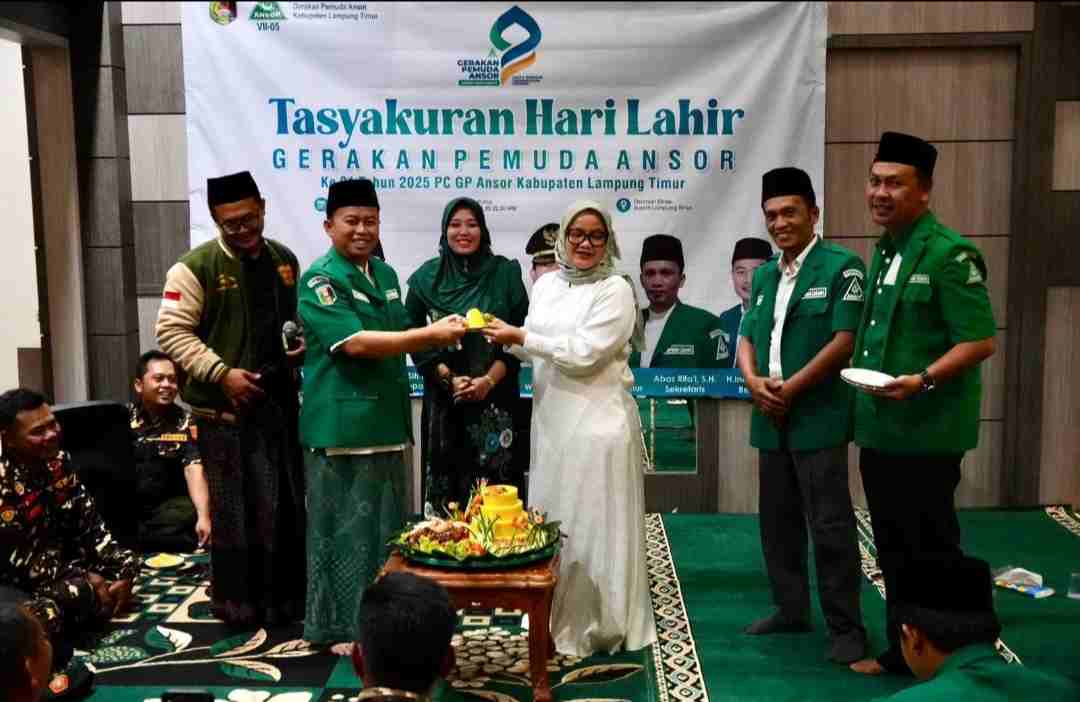 Lampung Timur, MR – Bupati Lampung Timur Hj.Ela Siti Nuryamah, Ketua DPRD Lamtim Hj Ridarotul Aliyah dan Ketua PC GP Ansor Lamtim H.M.Muslih Peringati Hari Lahir GP Ansor Ke 91 Tahun 2025 di Rumah Dinas Bupati pada Senin 19 Mei 2025.