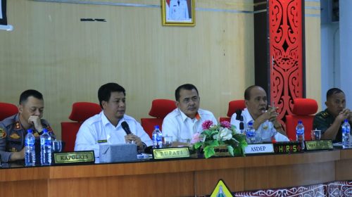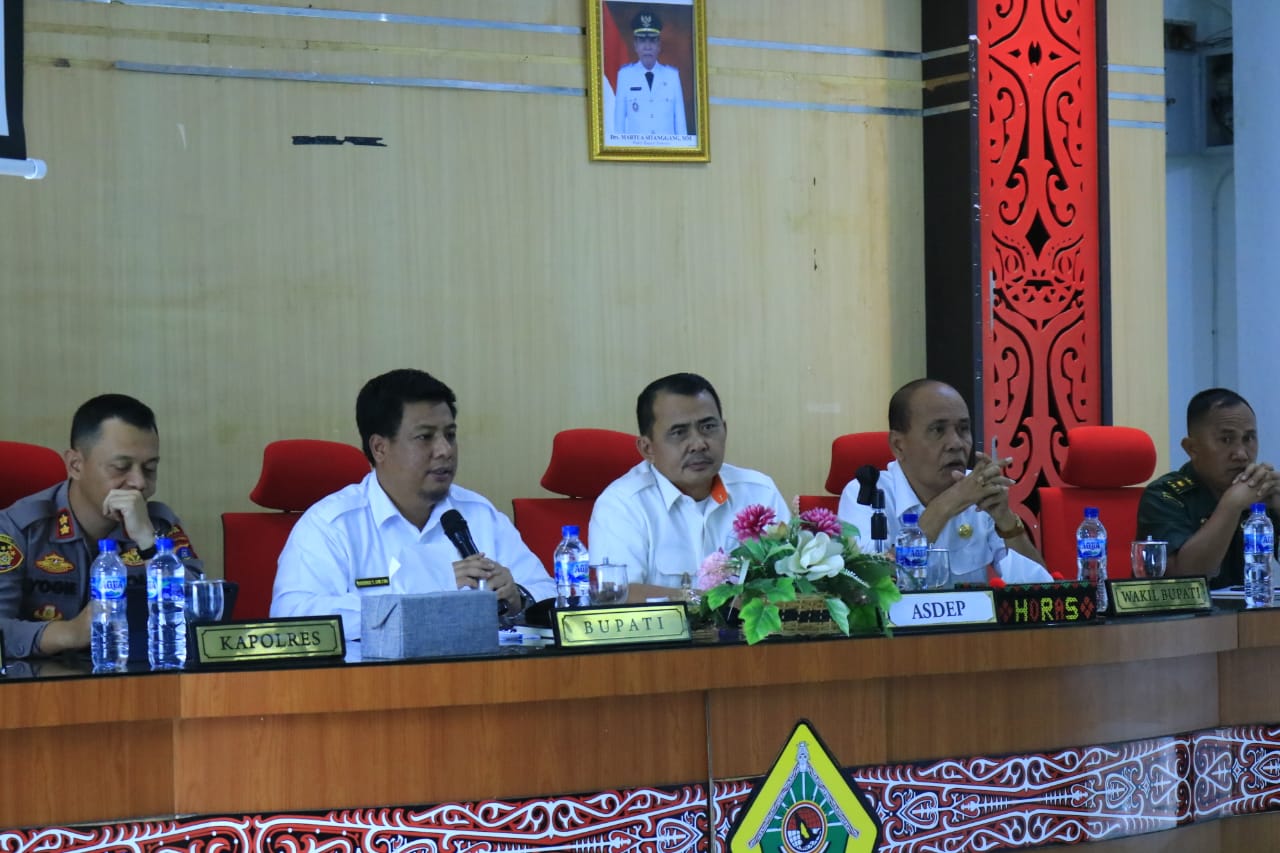SAMOSIR, MR | Bupati Samosir, Vandiko T. Gultom, ST membuka secara resmi rapat koordinasi penyelesaian isu Lahan Pengembangan Destinasi Pariwisata Super Prioritas (DPSP) Danau Toba Wilayah Samosir. Bertempat di Aula Kantor Bupati Samosir, Rabu (11/01).