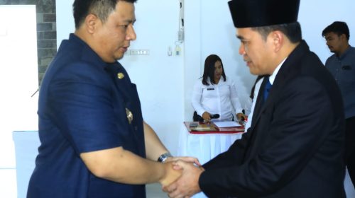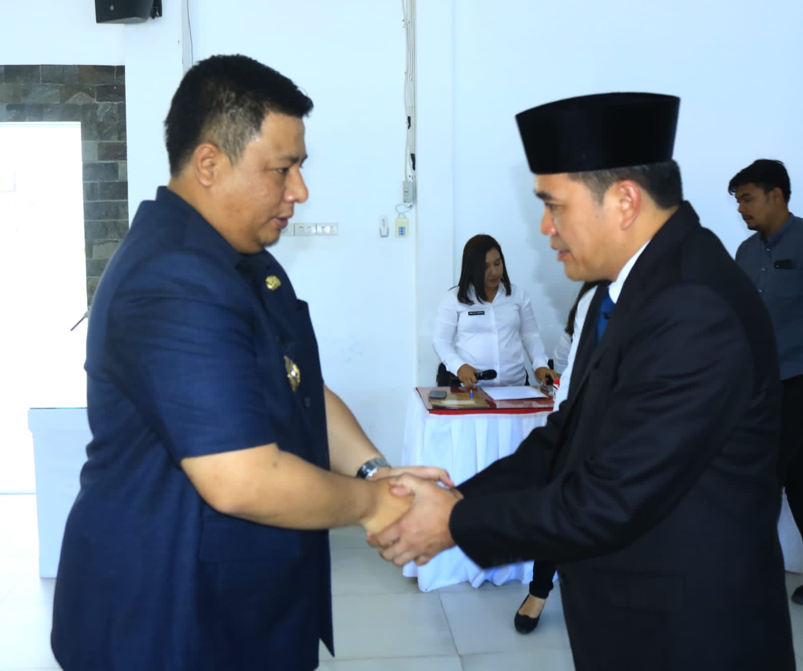 Samosir, MR | Bupati Samosir melantik Naslindo Sirait sebagai Penjabat Sekda Kabupaten Samosir di Aula Kantor Bupati Samosir, Rabu (07/06).