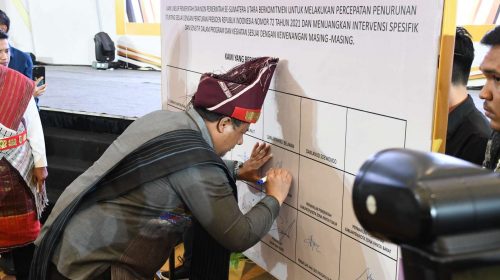 Dalam kesempatan yang sama Bupati Samosir mewakili daerah Zona dataran tinggi bersama Kepala Daerah lainnya melakukan penandatanganan bersama komitmen rembuk stunting, dalam rangka percepatan penurunan stunting di Sumut tahun 2025.