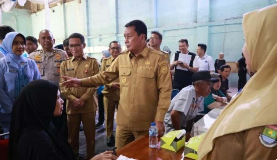 Kabupaten Tangerang, MR – Bupati Tangerang, Moch. Maesyal Rasyid menghadiri dan meninjau langsung kegiatan bakti sosial (Baksos) yang digelar Satuan Radar (Satrad) 401 Tanjung Kait.