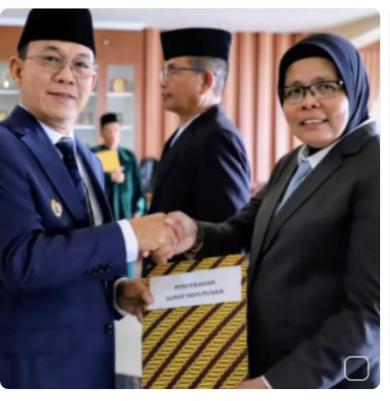 Tapanuli Selatan, MR – Bupati Tapsel H. Gus Irawan Pasaribu serahkan SK pelantikan kepada Efrida Yanti Pakpahan, usai dilantik sebagai Kepala Dinas Pendidikan Tapsel di lobby Sekretariat Kantor Bupati Tapsel di Sipirok, Selasa (28/4/2026).