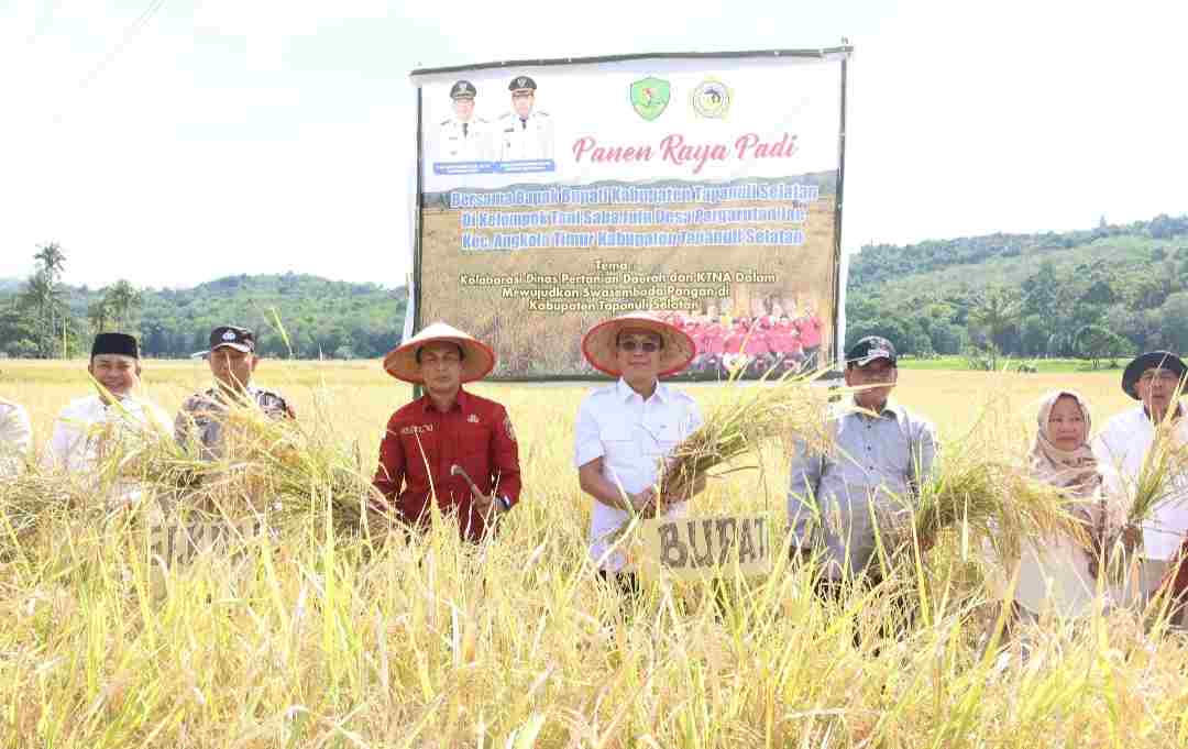 Tapanuli Selatan, MR – Dalam langkah konkret mendukung program swasembada pangan yang dicanangkan pemerintah pusat, Bupati Tapanuli Selatan, Gus Irawan Pasaribu, memimpin langsung kegiatan panen raya padi di Desa Pargarutan Jae, Kecamatan Angkola Timur, Kabupaten Tapsel, Sabtu (17/5/2025).