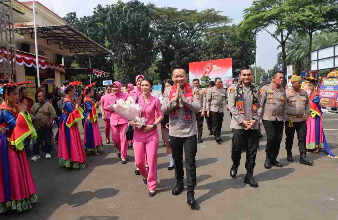 TANGSEL, MR – Dengan naik Andong, Kapolres Tangerang Selatan AKBP Victor D.H. Inkiriwang, S.H., S.I.K., M.Si. bersama Ketua Bhayangkari Cabang Tangerang Selatan mengunjungi Mapolsek Serpong pada Sabtu, 5 Juli 2025. Kunjungan tersebut dalam rangka pelaksanaan Bakti Sosial melalui pembagian sembako kepada masyarakat yang membutuhkan dan Bakti Kesehatan berupa donor darah, pemeriksaan kesehatan dan khitanan massal secara gratis, serta menghadiri acara peresmian pagar dan Gerbang Gapura Polsek Serpong, yang mana keseluruhan kegiatan tersebut masih dalam rangkaian memperingati Hari Ulang Tahun (HUT) Bhayangkara Ke-79,
