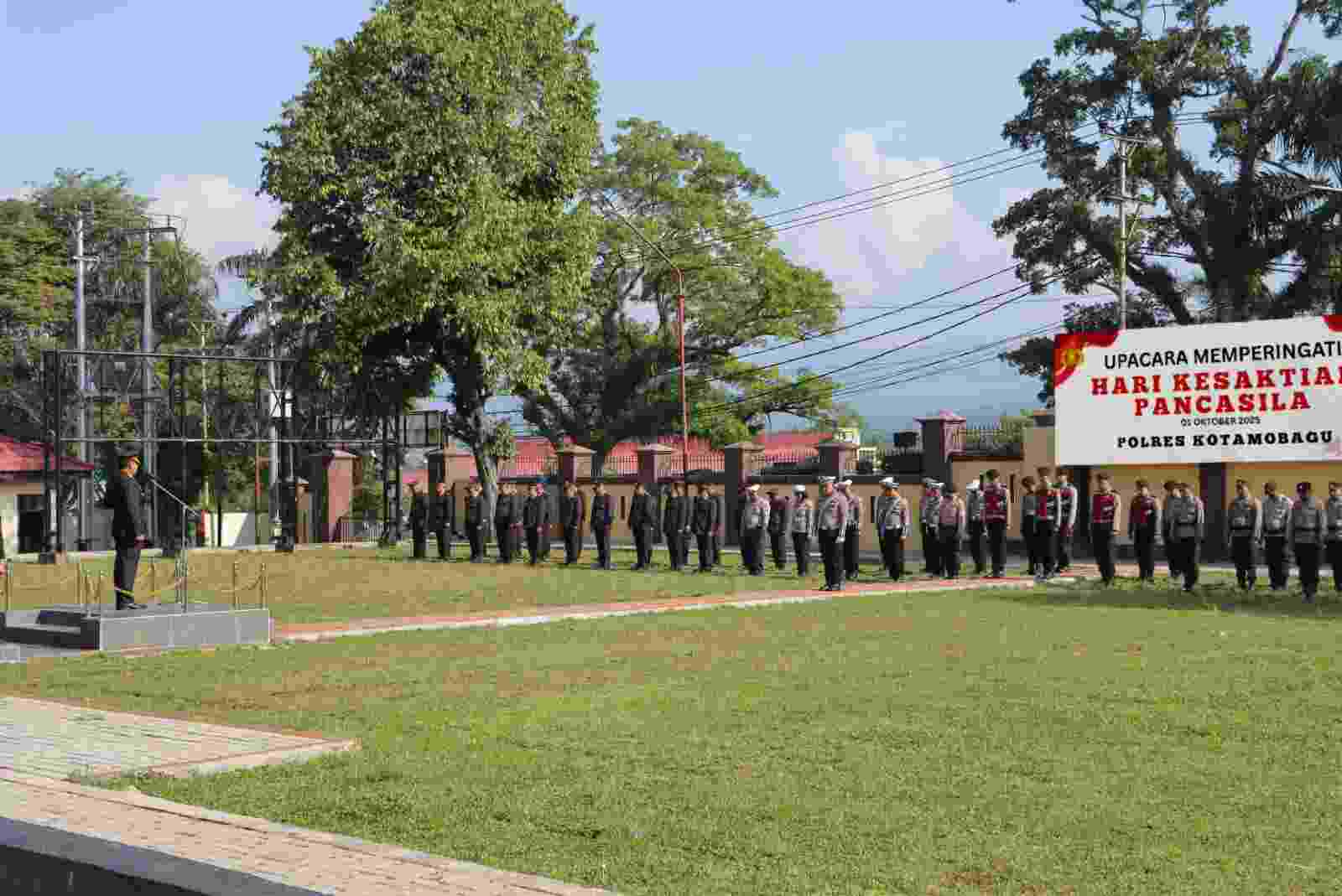 Kotamobagu, MR – Selasa 1 Oktober 2025 Kapolres Kotamobagu AKBP Irwanto, S.I.K, M.H menjadi inspektur upacara peringatan hari kesaktian Pancasila di lapangan upacara Mapolres Kotamobagu.