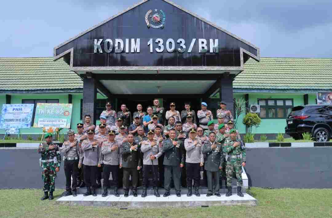 Kapolres yang turut didampingi sejumlah pejabat utama dan Perwira Staf Polres disambut oleh Kasdim Mayor Arh. Achmad Janis mewakili Dandim 1303 Bolmong Letkol. Inf. Fahmil Harris, SIP yang sedang menghadiri hari puncak HUT TNI ke-80 di Manado.