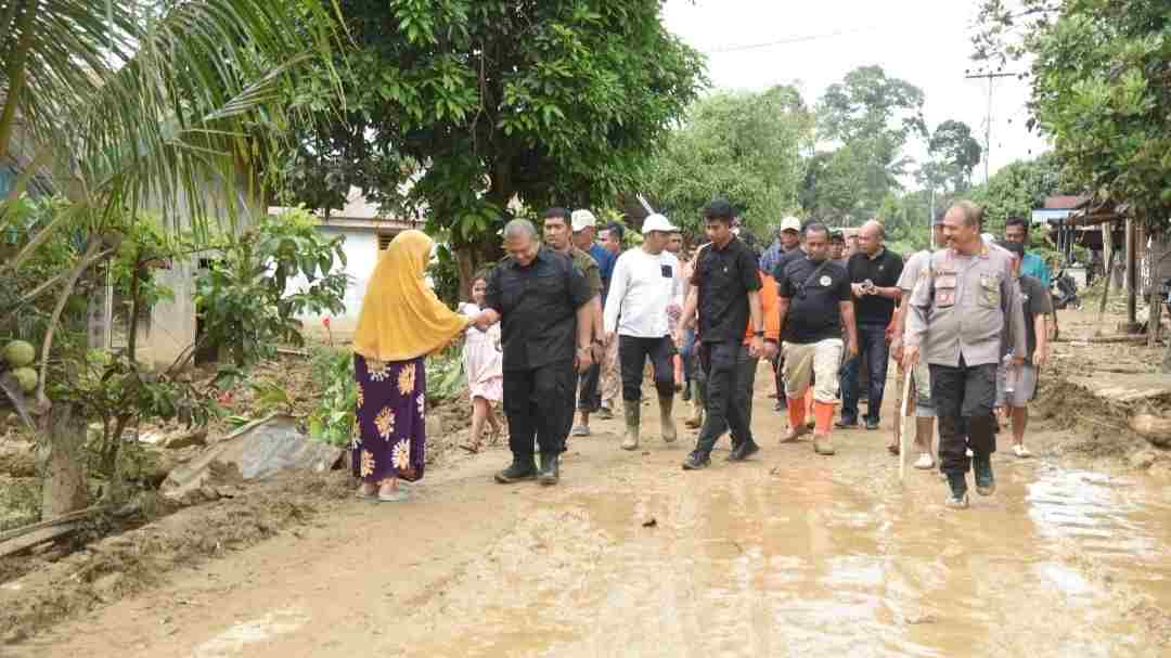 Tapanuli Selatan, MR – Bupati Tapanuli Selatan, Dolly Pasaribu, langsung Meninjau Dampak Banjir Bandang dan menunjukkan kepeduliannya dengan meninjau lokasi banjir bandang yang melanda 2 kecamatan yakni Kecamatan Batang Angkola dan Sayur Matinggi, Minggu (24/11).