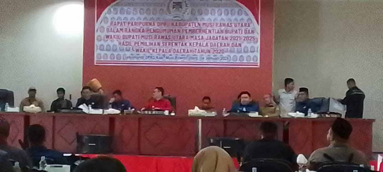 MURATARA, MR – Dewan Perwakilan Rakyat Daerah (DPRD) Kabupaten Musi Rawas Utara (Muratara) propinsi sumatera selatan menggelar rapat paripurna pemberhentian Bupati dan Wakil Bupati masa jabatan 2021-2025 hasil Pemilihan Kepala Daerah (Pilkada) tahun 2021, 06/01/2025 di Ruang rapat Paripurna DPRD Muratara.