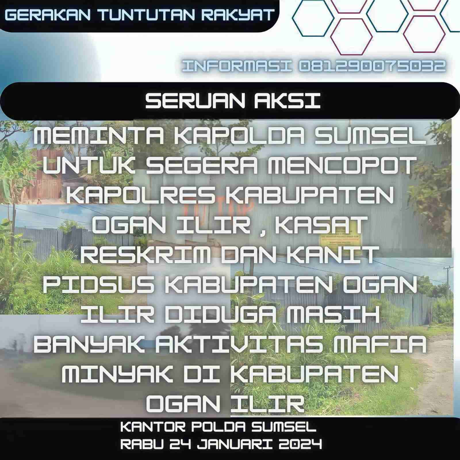 1 .Meminta Kapolda Sumsel untuk segera mencopot Kapolres Ogan Ilir.