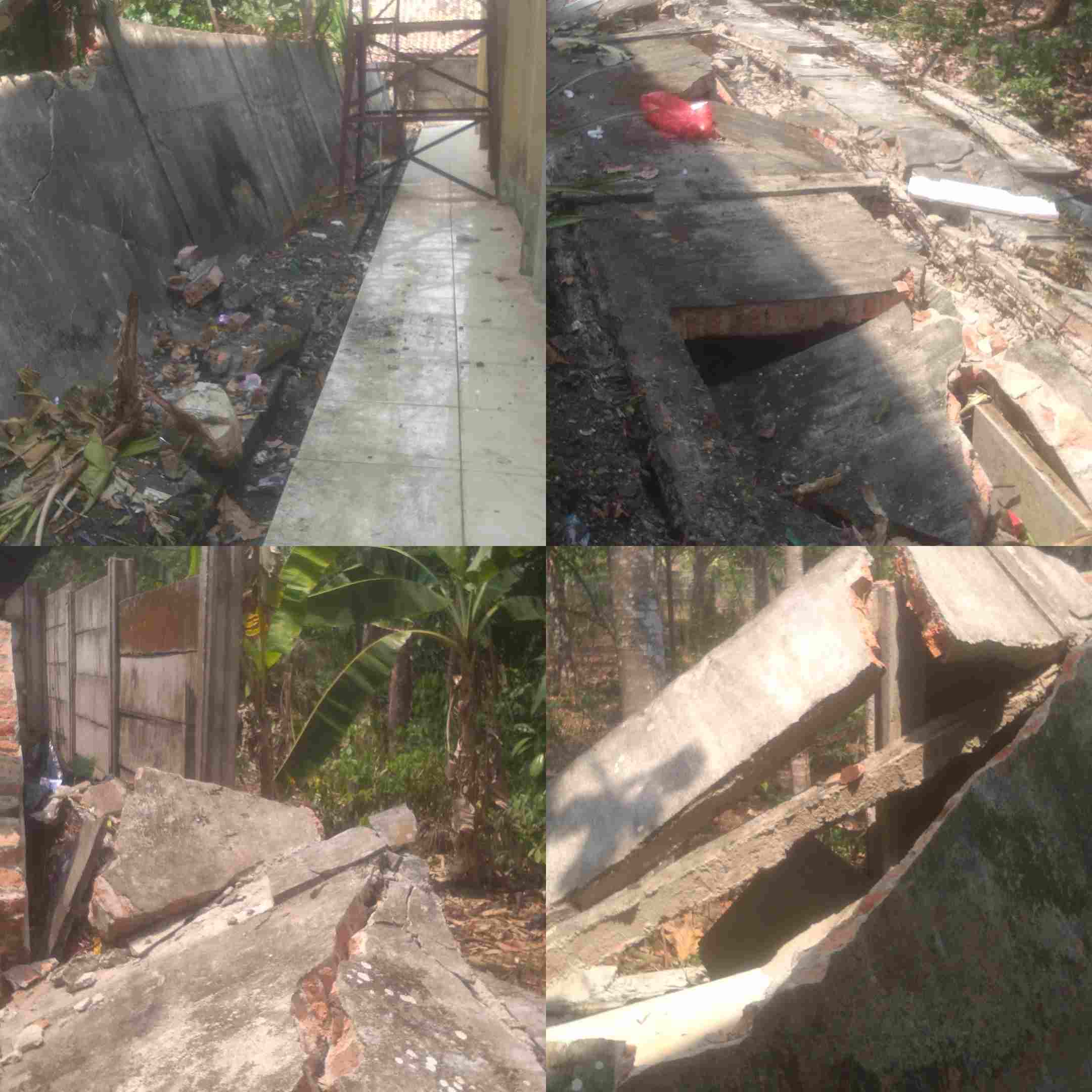Baturaja, MR | Hampir keseluruhan pagar gudang farmasi,tempat penyimpanan obat-obatan roboh akibat getaran dari lokasi peledakan tambang pt, semen baturaja, yang letak gudang tersebut sangat dekat dengan area tambang semen baturaja. Roboh nya pagar tersebut pada hari, Sabtu (4/11.2023).