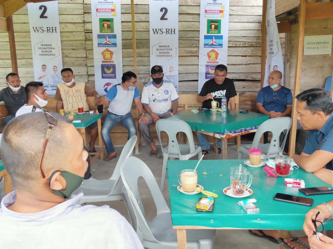 Natuna(MR) — Paslon nomor urut 2, Wan Siswandi Rodhial Huda, menghadiri undangan ngopi bareng, bersama Pedagang Pasar Minggu (15/11) di kedai kopi Beni Ranai.