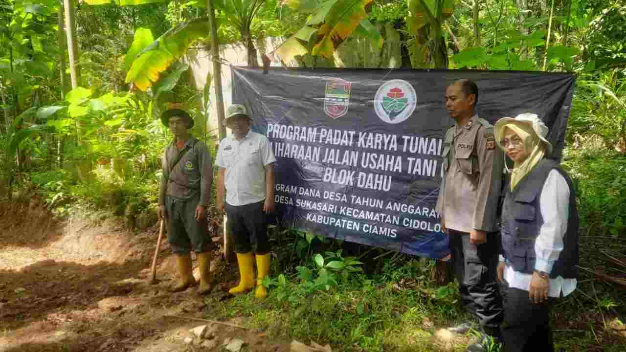 Ciamis, MR – Personel Polsek Cimaragas Polres Ciamis Polda Jabar melaksanakan kegiatan humanis dengan hadir memonitoring padat karya Jalan Usaha Tani. Program padat karya ini dilaksanakan pada jalan Blok Dahu Cibungur Dusun Talagasari, Desa Sukasari, Kecamatan Cidolog, Kabupaten Ciamis, Jawa Barat, Rabu (26/11/2025).