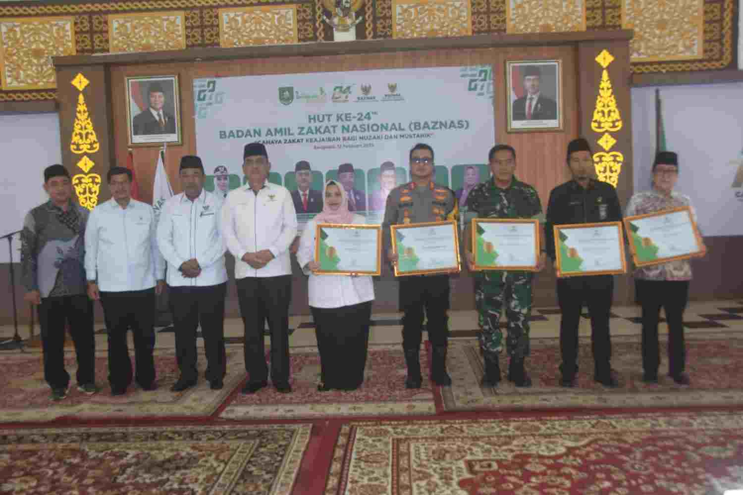 Pada Kesempatan itu, Bupati Bengkalis Kasmarni dan Wakil Bupati Bagus Santoso serta Sekda Bengkalis Dr. Ersan Saputra TH menerima penghargaan atas dukungan dan kebijakan pengumpulan ZIS-DSKL melalui Payroll System TPP ASN Kabupaten Bengkalis.
