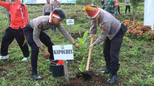 HUT RI Ke-78, Polres Samosir Ikuti Penanaman Pohon Serentak Se-Indonesia Yang Dipimpin Kapolri
