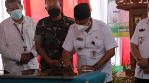 Pemalang Jateng, [MR] – Ibu kota Kecamatan Bodeh mulai hari ini, Selasa (25\1\2022) secara resmi dipindahkan dari Desa Muncang ke Desa Jraganan. Pemindahan tersebut dibarengi dengan peresmian gedung baru kantor Kecamatan Bodeh. Peresmian tersebut, ditandai dengan penandatanganan prasasti, kemudian dilanjutkan pemotongan pita dan lounching Anjungan Dukcatpil Mandiri [ADM] oleh Bupati Pemalang Mukti Agung Wibowo serta disaksikan Wakil Bupati Mansur Hidayat dan Sekretaris Daerah M.Arifin, kemudian Forkopimca Bodeh.Sementara itu, Bupati menyampaikan, bahwa Pemerintah Kabupaten Pemalang melalui Perda Nomor 4 Tahun 2021, tentang pemindahan ibu kota Kecamatan Bodeh. Berupaya untuk memindahkan lokasi Ibu Kota Kecamatan Bodeh, dari Desa Muncang ke Desa Jraganan. Hal tersebut dilakukan dengan pertimbangan, bahwa lokasi ibu kota Kecamatan yang baru di Desa Jraganan dipandang lebih ideal dan terjangkau dari seluruh penjuru Desa yang ada di Kecamatan Bodeh.
