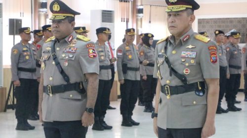MANADO, MR | Jumat 13 Januari 2023 – Polda Sulut Kapolda Sulawesi Utara Irjen Pol Setyo Budiyanto memimpin upacara serah terima jabatan (sertijab) Wakapolda, Karo SDM, Dirpamobvit, Dirreskrimsus dan Kabid Propam Polda Sulut. Upacara berlangsung di aula Catur Prasetya Mapolda Sulut.