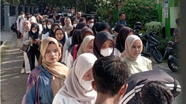 Terlihat ada sekitar 600 orang pencari kerja yang datang ke SMK Negeri 9 kota tangerang