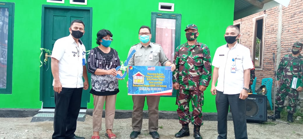 Kotamobagu, (MR) – Masih dalam suasana Rangka Hut TNI ke-75, Kodim 1303 bersama BRI memberikan kunci Rumah RTLH kepada warga yang berstatuskan janda (Cerai mati) salah satu Warga motoboi kecil Kecamatan kotamobagu timur. Rabu (07/10). Bantuan Bedah Rumah yang telah Rampung dikerjakan oleh jajaran Kodim 1303 yang bekerjasama langsung dengan pihak BRI dalam rangka Hut TNI ke-75 yang jatuh pada Tanggal 5 Oktober 2020. Awal dari pekerjaan Bedah Rumah Tidak Layak Huni (RTLH) pada Senin Tanggal 17 September yang lalu.