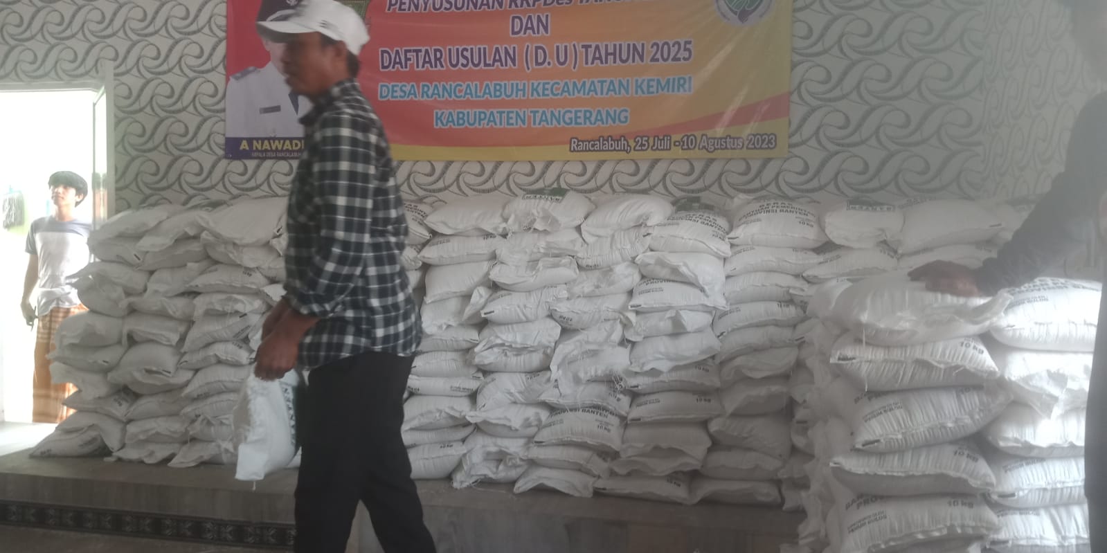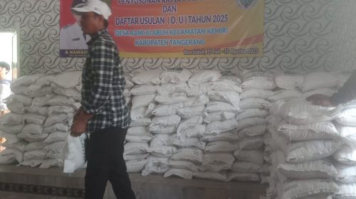 KABUPATEN TANGERANG (MR) – Masyarakat desa rancalabuh berbondong-bondong datang ke kantor desa rancalabuh untuk mendapatkan bantuan beras 10 kg dari pemerintah propinsi banten