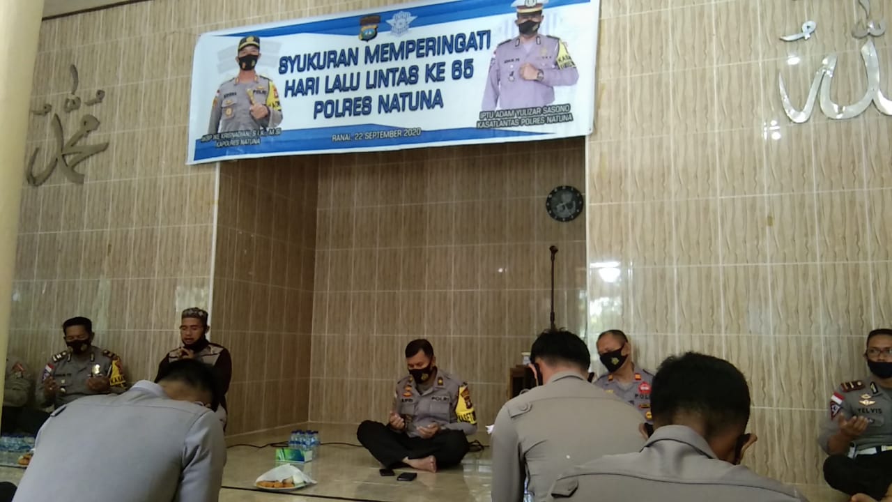 Natuna(MR)- Dalam rangka memperingati Hari Ulang Tahun Lalu Lintas Polres Natuna Ke-65 Tahun 2020 Polres Natuna, melakukan sukuran di Mushola Al Jannah Polres Natuna.