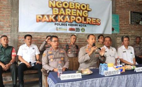 Kediri, (MR) – Kapolres Kediri Kota AKBP Bramastyo Priaji, S.H., S.I.K., M.Si. didampingi Wakapolres Kediri Kota Kompol Dodik Tri Hendro Siswoyo, S.H., S.I.K., M.I.K. PJU Polres Kediri Kota, Forkopimcam Kec Kota Kediri mengunjungi warga Kel Kampungdalem Kec Kota Kediri sembari ngobrol bareng, Rabu (22/5/2024)