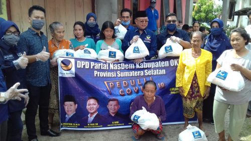 Untuk membantu beban Masyarakat Kabupaten Ogan Komering Ilir (OKI) Sumatera Selatan, DPD Partai Nasional Demokrat (NasDem) Kab OKI membagikan paket sembako kepada masyarakat sebanyak lebih kurang 300 paket, sembako tersebut di berikan kepada Tukang Becak dan Rakyat Kurang mampu di Kecamatan Kota Kayuagung, seperti Terminal Kayuagung, Desa Celika, Kijang Ulu, Tanjung Serang dan desa lainnya. Aksi bagi-bagi paket sembako gratis tersebut diserahkan langsung Ketua Dewan Pimpinan Daerah (DPD) Partai NasDem Kabupaten Ogan Komering Ilir (OKI), H Solahuddin Djakfar. Jum’at (10/4/2020).