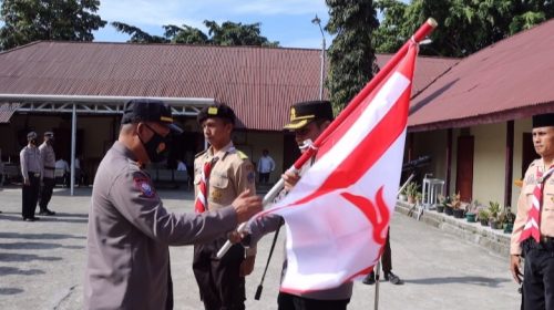 Kotamobagu, MR | Pada Senin 12/12/2022, Kapolres Kotamobagu AKBP Dasveri Abdi, SIK melepas kontingen Pramuka gugus depan (Gudep) Tribrata pangkalan Polres Kotamobagu di lapangan Apel Mapolres Kotamobagu. Pelepasan di awali dengan penyerahan bendera panji Pramuka kontingen Gudep Tribrata kepada Kasat Binmas Iptu Tommy Lalamentik.