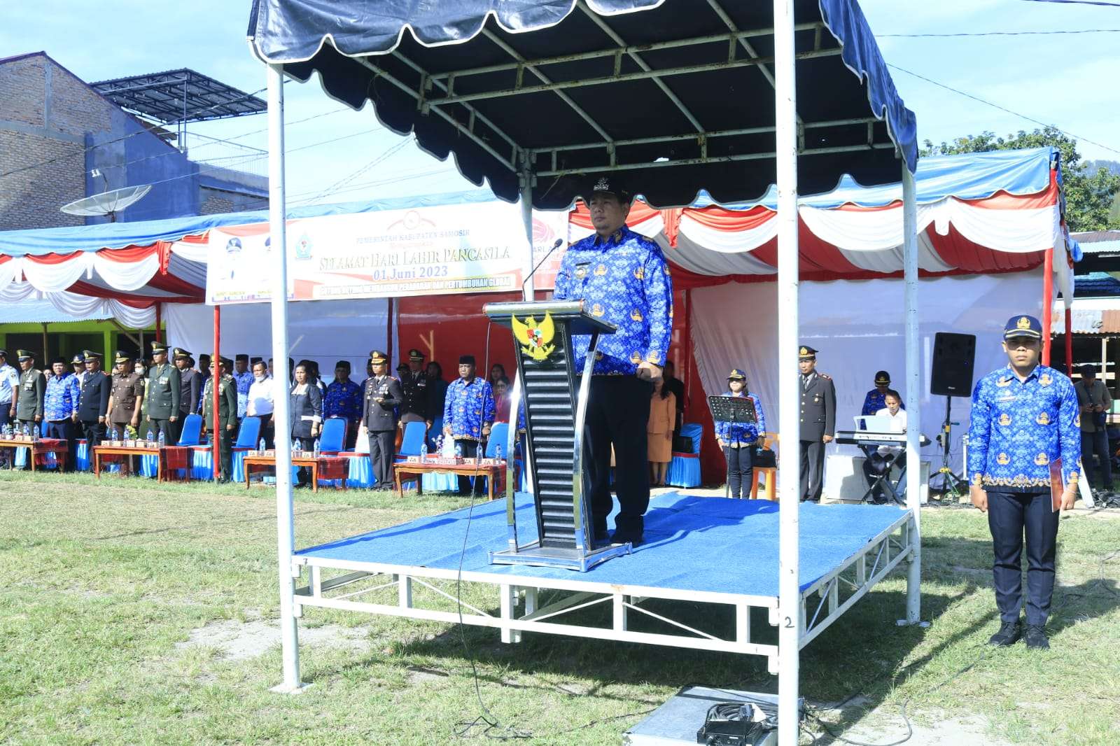 Upacara dihadiri Forkopimda Kabupaten Samosir, Pimpinan OPD se-Kabupaten Samosir, para Staf Ahli, para Asisten, para camat, pimpinan instansi vertikal BUMN/BUMND se-Kab. Samosir, Ormas, TP.PKK, DWP, personil TNI/Polri, jajaran staf Pemkab Samosir serta pelajar tingkat SD, SMP dan SMA. Peringatan Hari Lahir Pancasila tahun 2023 mengangkat tema “Gotong royong Membangun Peradaban dan Pertumbuhan Global”.