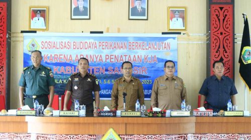 Samosir, MR | Bupati Samosir diwakili Plh. Sekda Drs. Waston Simbolon membuka secara resmi Sosialisasi Budidaya Perikanan Berkelanjutan Karena Adanya Penataan KJA (Keramba Jaring Apung) di Kabupaten Samosir yang dilaksanakan di Aula Kantor Bupati Samosir, Selasa (5/9).