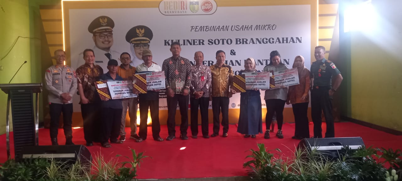 Bupati Kediri diwakilkan Kepala Diskopusmik Kabupaten Kediri Santoso menyampaikan, bahwa bantuan usaha rombong soto ini untuk bisa mendorong usaha UMKM, kuliner soto bisa menarik pengunjung dari luar Kediri untuk singgah di soto Branggahan dan berharap berkembang menjadi maju.