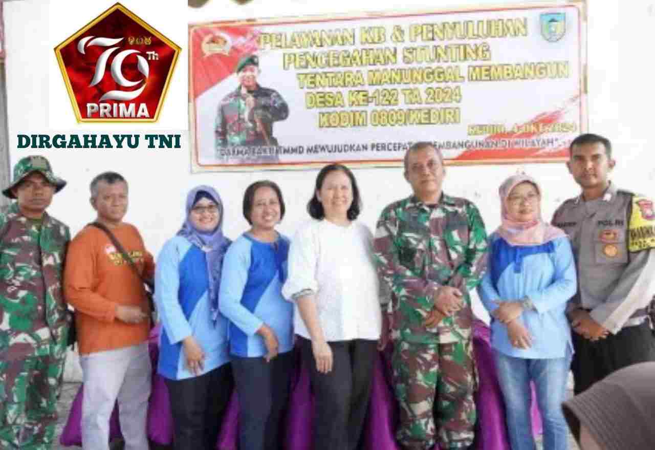 Kepala DP2KBP3A Kab. Kediri Nur Wulan Andadari mengatakan,“ Kegiatan ini kolaborasi antara TNI, POLRI, Dinas Kesehatan Kabupaten Kediri , memberikan pelayanan untuk pasangan usia subur yang menggunakan alat atau obat kontrasepsi untuk mencegah kehamilan (akseptor) dan juga sosialisasi pencegahan dan penanganan stunting.”
