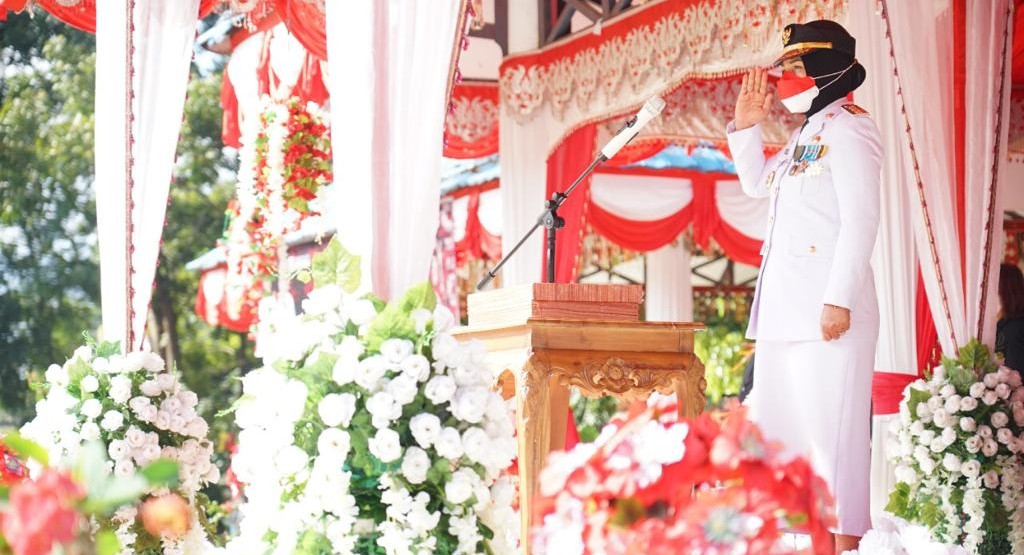 Upacara Peringatan HUT Kemerdekaan Republik Indonesia Ke-76 yang di hadiri Forkompimdah Kota Kotamobagu dengan mengikuti protokol kesehatan.