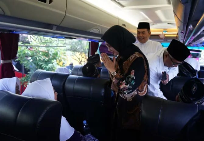 Kediri, MR – Wali Kota Kediri Vinanda Prameswati memberangkat 240 Calon Jemaah Haji Kota Kediri. Pemberangkatan dilaksanakan di GOR Jayabaya, Kamis (01/05/2025). Dijadwalkan rombongan tiba di Asrama Haji Sukolilo pada pukul 11 lebih.