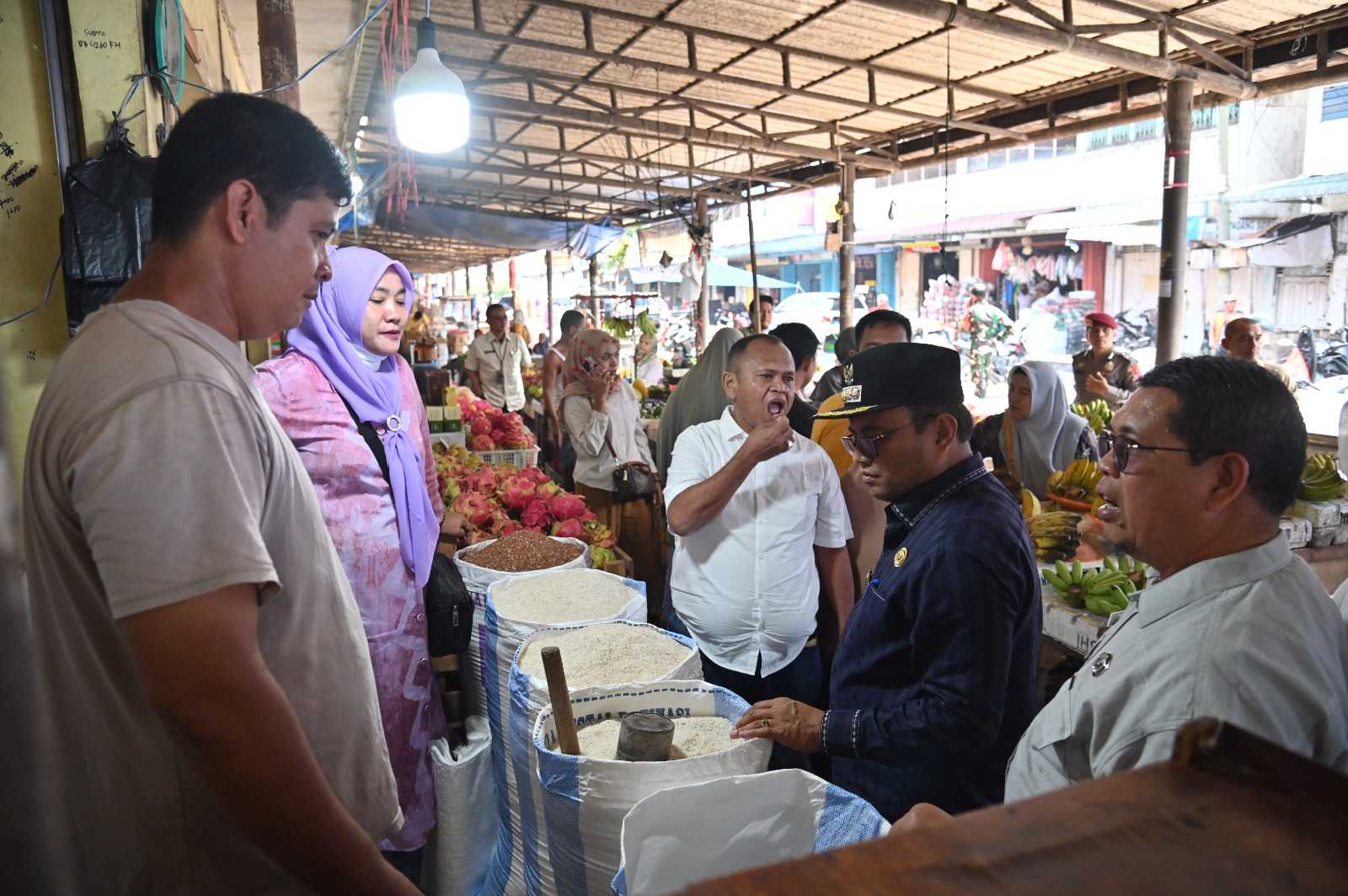 Padangsidimpuan, (MR) – Pj. Walikota Padangsidimpuan Dr. H. Letnan Dalimunthe, S.K.M, M.Kes bersama Tim Pengendalian Inflasi Daerah (TPID) melakukan pemantauan harga kebutuhan pokok pangan terpadu, Jum’at (16/2/2024).