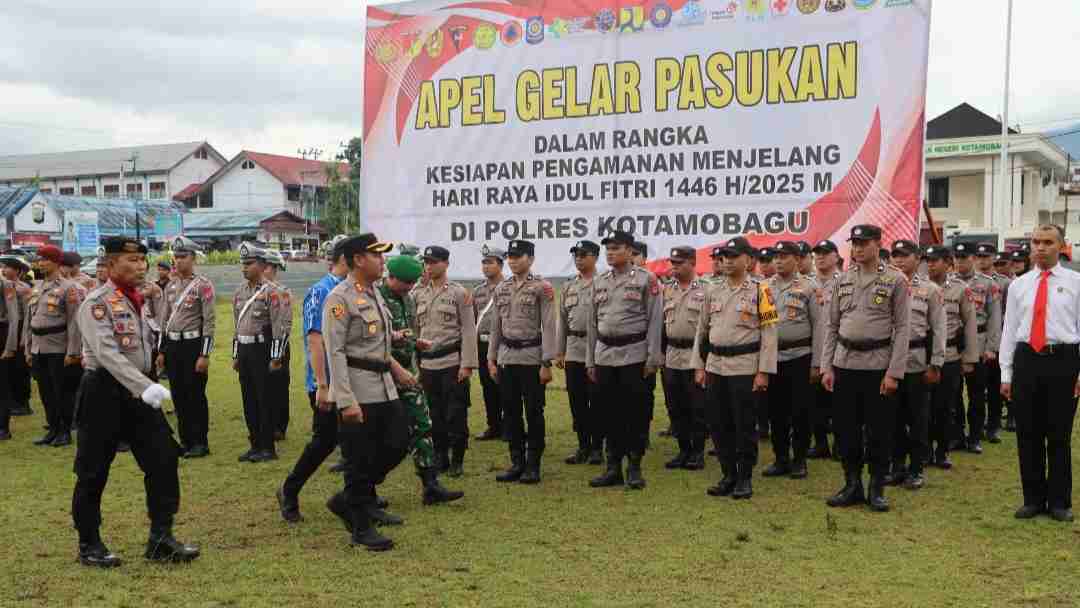 KOTAMOBAGU, MR – Polres Kotamobagu menggelar Apel Gelar Pasukan Operasi Ketupat Samrat 2025 di Alun-alun Boki Hotinimbang, Kamis (20/3/2025). Operasi yang berlangsung selama 14 hari, mulai 26 Maret hingga 8 April 2025, ini mengusung tagline “Mudik Aman, Keluarga Nyaman”.