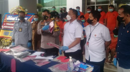Kabupaten Tangerang, (MR) – Aparat Polresta Tangerang Polda Banten meringkus total 17 orang yang terlibat dalam kasus tindak pidana pencurian kendaraan bermotor (curanmor). Para tersangka terdiri dari 10 pemetik atau pengambil kendaraan dan 7 penadah.
