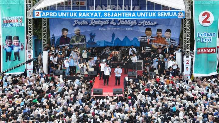 Padangsidimpuan, MR – Kampanye akbar pasangan nomor urut 2 Calon Walikota dan Wakil Walikota Padangsidmpuan Dr. H. Letnan Dalimunthe, SKM, M.Kes dan H. Harry Pahlevi Harahap bagaikan Lautan manusia semakin membuktikan kecintaan masyarakat semakin tak terbendung, Rabu (20/11/2024).