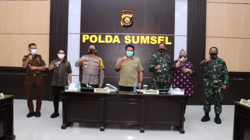 Sumsel, (MR) – Kapolda sumsel Irjen Pol Prof Dr.Eko Indra Heri S MM beserta Gubernur Sumsel H.Herman Deru bersama unsur Forkompinda Prov Sumsel.Rapat bersama membahas Penerapan Protokol kesehatan Pelaksanaan Pilkada serentak 2020.,diprov sumsel,Dalam rapat tersebut turut hadir Ketua KPU Prov sumsel Dra Kelly Mariana,Ketua Bawaslu Sumsel Iin Irwanto ST,MM,Danrem 044 Gapo Brigjen TNI Jauhari Agus Suraji,Asintel Kodam II Sriwijaya Kolonel Inf Priyanto Eko Widodo,Kasi Kamnegtibum Kajati Sumsel Sigit kristiyanto,SH MH,Kadiskesehatan Prov Sumsel Dra Lesty Nuraini,APT,M.Kes dan Kasat Pol PP Sumsel H.Aris Saputra .Diruang Rekonfu lantai III Gedung Promoter Mapolda Sumsel selasa 08/09/2020.