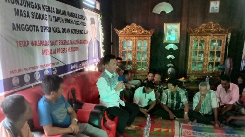 Kayuagung, MR | ANGGOTA DPRD Kabupaten Ogan Komering Ilir (OKI) Sumatera Selatan Bakri Tarmusi, SE untuk mendengar aspirasi masyarakat, dengan cara mendatangi warga dari satu wilayah ke wilayah lainnya dalam rangka reses III masa persidangan III Tahun Sidang 2022- 2023, anggota DPRD Kab OKI tersebut mengatakan reses telah diatur Undang-undang, bahwa anggota DPRD harus melakukan kerja di luar gedung dan bertemu langsung dengan masyarakat untuk mendengarkan apa yang di butuhkan masyarakat.