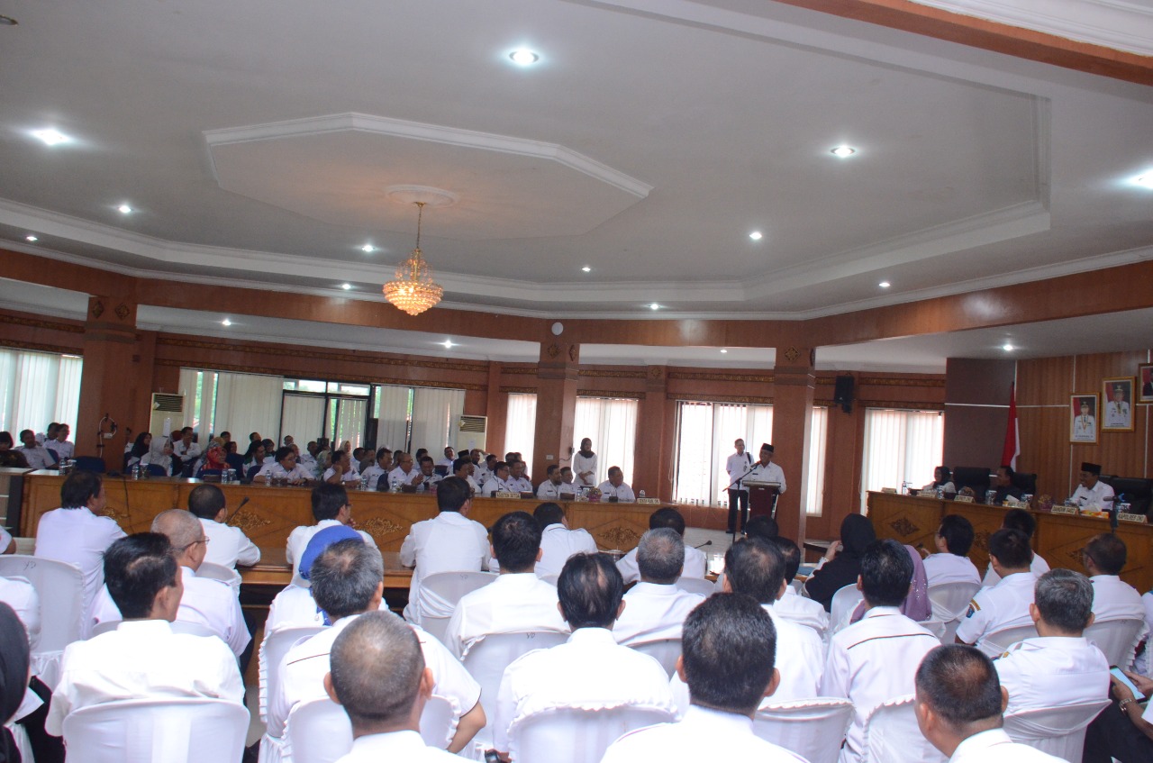 Kayuagung, (MR) – Bupati Ogan Komering Ilir (OKI) Provinsi Sumatera Selatan, H. Iskandar, SE menyerahkan Dokumen Pelaksanaan Anggara (DPA) Tahun 2020 kepada Organisasi Perangkat Daerah (OPD) se Kabupaten OKI di Ruang Rapat Bende Seguguk I pada Kamis, (2/1/2020)