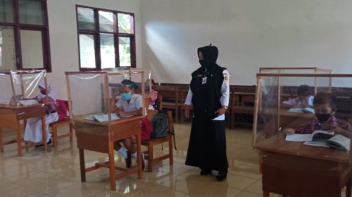 Kegiatan belajar tatap muka ini mulai diberlakukan ditingkatan SD, maupun SMP, pada hari Senin (8/2).