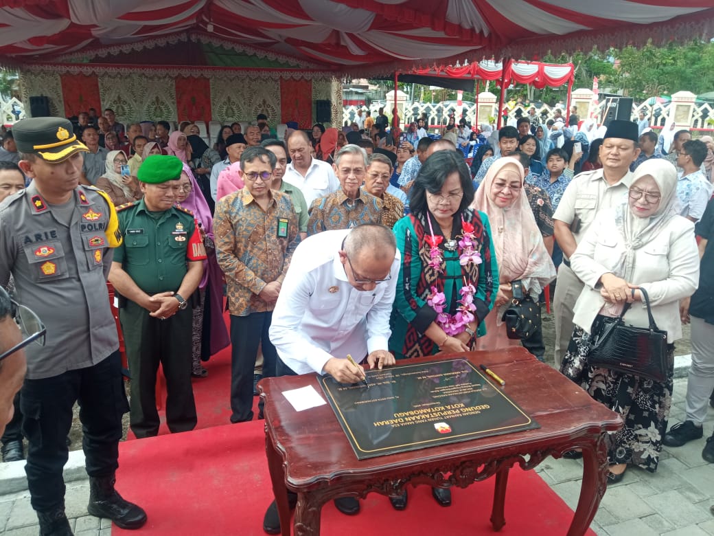 KOTAMOBAGU, MR | Jumat 8 Maret 2024 Pj. Wali Kota Kotamobagu, Dr. Drs. Hi. Asripan Nani., M.Si., dan Deputi Pengembangan Bahan Pustaka dan Jasa Informasi Perpustakaan Nasional Republik Indonesia, Dra. Mariana Ginting, M.M., meresmikan Gedung Perpustakaan Daerah Kota Kotamobagu.