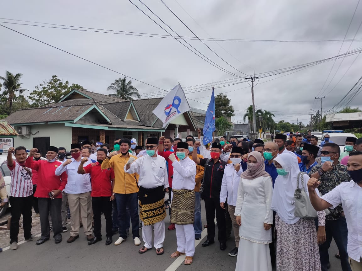 Sejumlah pengurus Partai,turut mendampingi Kedua Paslon memasuki kantor KPU Natuna guna menyerahkan berkas pencalonan sebagai sarat utama, tanpa mengesampjngkan standarisasi protokol kesehatan