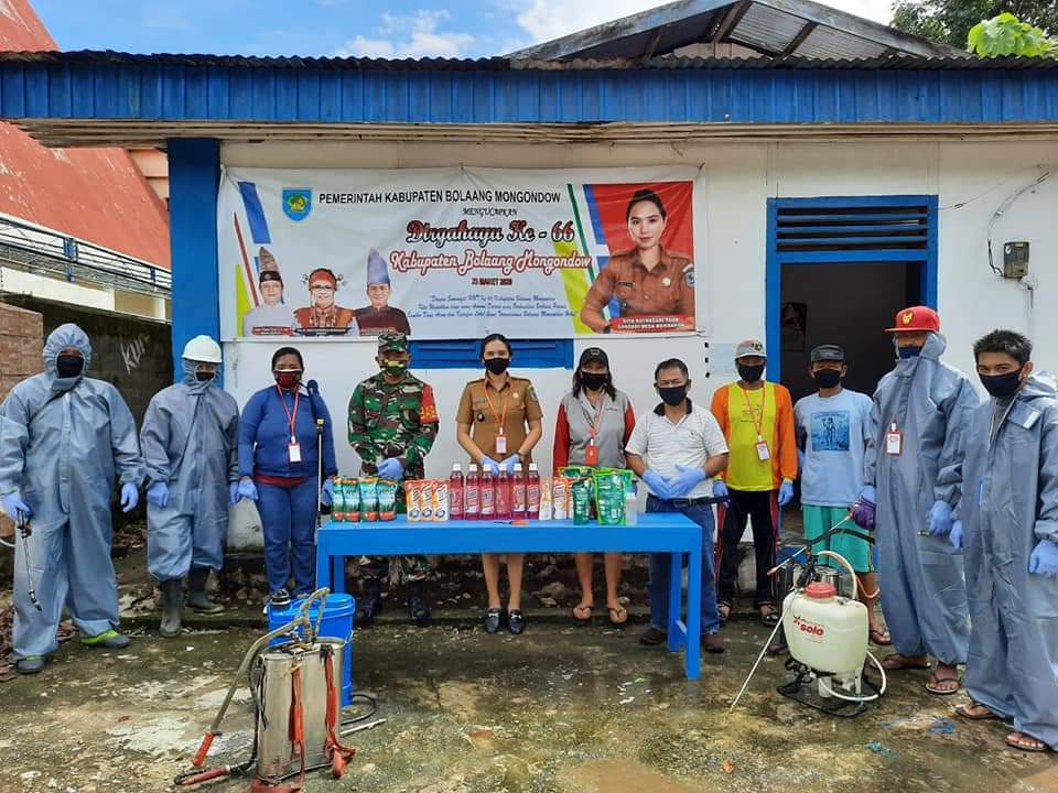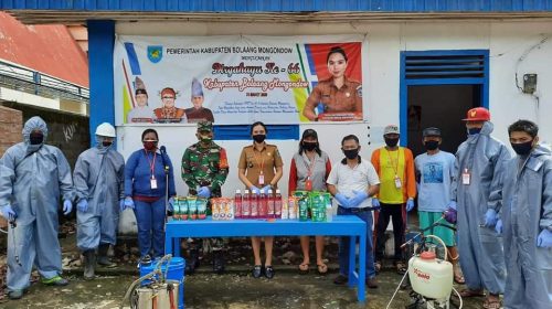 Bolaang Mongondow, (MR) – Kepala Desa Bombanon, Kecamatan Lolayan,Bolaang Mongondow Sulawesi Utara membentuk tim relawan desa Lawan Covid-19 Bombanon lakukan penyemprotan disinfektan yang ke-2 kalinya diwilayah lingkungan warga sebanyak 230 rumah dengan jumlah 296 KK serta tempat ibadah dan bangunan fasilitas umum lainnya, Selasa(29/04). Hal ini merupakan salah satu agenda yang rutin akan dilaksanakan dengan sistem berkala. Gita Ratnasari Tuuk sang Kepala Desa yang anggun dan berparas cantik serta pintar ini berharap dengan adanya gerakan ini dapat membangkitkan tingkat kewaspadaan terhadap pandemi Covid-19 ini serta membangun kesadaran warga akan kebersihan lingkungan sekitar kita.